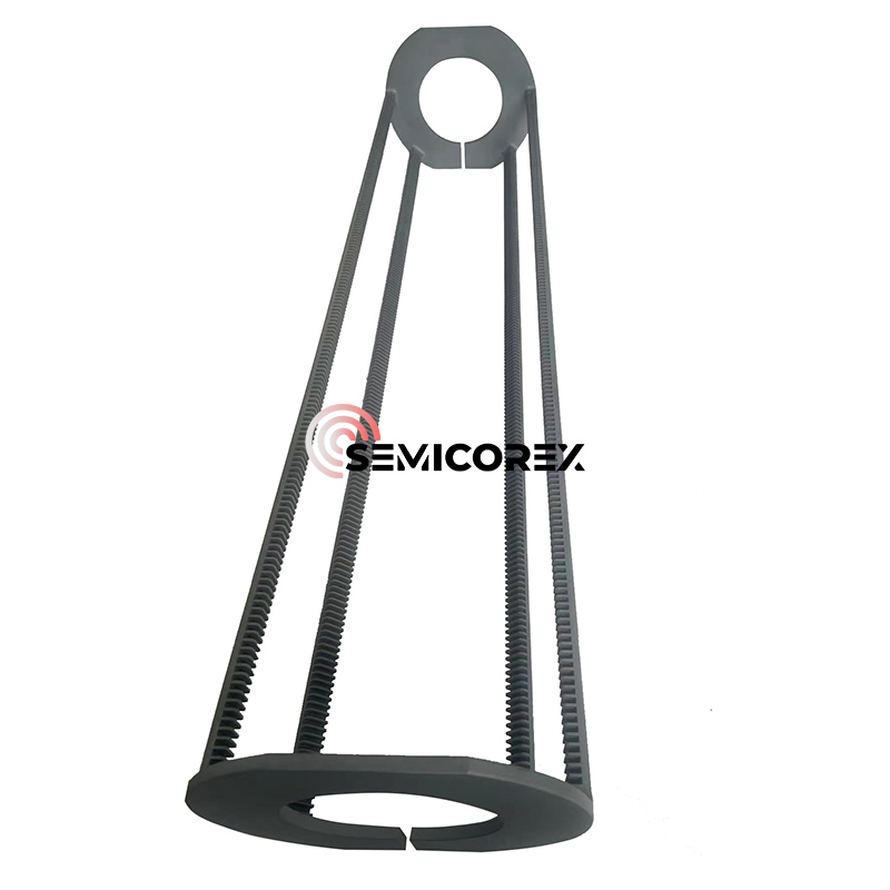 Môi trường xử lý lò thẳng đứng yêu cầu một hệ thống hỗ trợ wafer có thể chịu được phơi nhiễm lặp đi lặp lại ở nhiệt độ cao, thường vượt quá 1.200 ° C và vẫn ổn định không ổn định mà không có vấn đề ô nhiễm. Các thuyền thẳng đứng SIC vượt trội trong sự mạnh mẽ của chúng trong những tình huống này vì các tính chất cơ học và nhiệt nội tại của cacbua silicon kết tinh hoặc CVD. Hệ số giãn nở nhiệt cực thấp của chúng đảm bảo sự biến dạng hoặc biến dạng tối thiểu do chu kỳ nhiệt nhanh. Ngoài ra, độ dẫn nhiệt cao, cung cấp tính đồng nhất nhiệt độ cục bộ lớn nhất trên tất cả các tấm wafer, điều này rất quan trọng đối với tính nhất quán của wafer-to hơn trong độ dày lớp, cấu hình pha tạp và hiệu suất điện; Các khía cạnh quan trọng của sản xuất khối lượng lớn trong ngành công nghiệp bán dẫn.