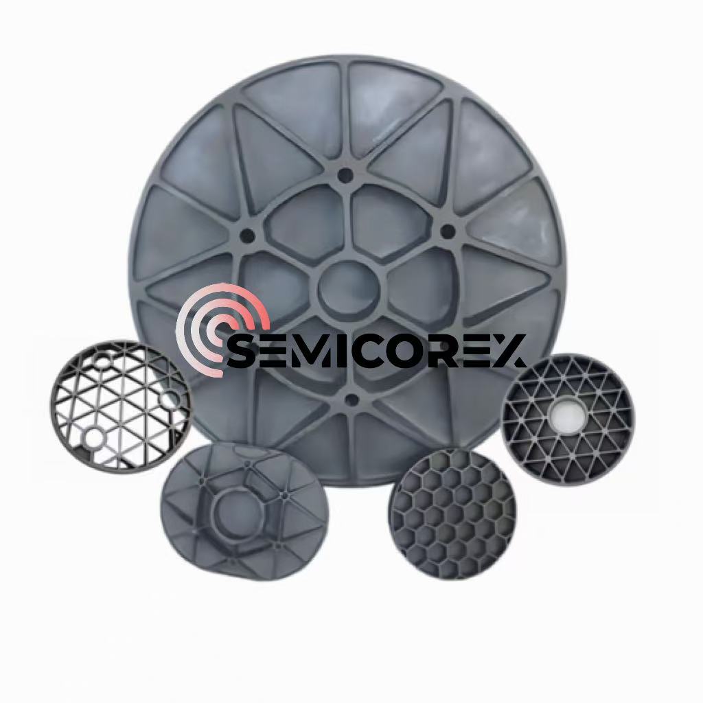 Để cải thiện sự thuận tiện trong vận hành và giảm mức tiêu thụ năng lượng của thiết bị, Semicorex sử dụng các loại vật liệu có độ cứng caocacbua silicđể sản xuất các khoảng trống gương và kết hợp các cấu trúc mạng phức tạp trong các khoảng trống để đạt được yêu cầu về trọng lượng nhẹ của gương phản chiếu cacbua silic. Sự kết hợp khéo léo giữa lựa chọn vật liệu và thiết kế kết cấu này giúp giảm đáng kể trọng lượng của gương phản chiếu cacbua silic trong khi vẫn duy trì độ cứng của chúng. Do đó, gương phản chiếu cacbua silic chiếm một vị trí thuận lợi không thể thay thế trong các lĩnh vực như hàng không vũ trụ và thám hiểm không gian sâu.